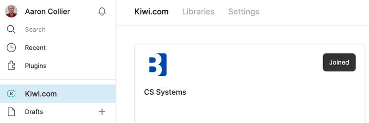 Now you’re inside the Kiwi.com organization. Anyone with a Kiwi.com email address is automatically a member of the organization and can view all designs. Now you need to find the designs relevant to you.
